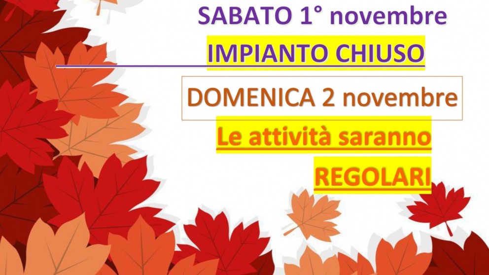 SABATO 1° NOVEMBRE  IMPIANTO CHIUSO PER FESTIVITA'