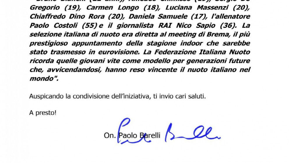 IN RICORDO DEI CADUTI DELLA NAZIONALE DI NUOTO